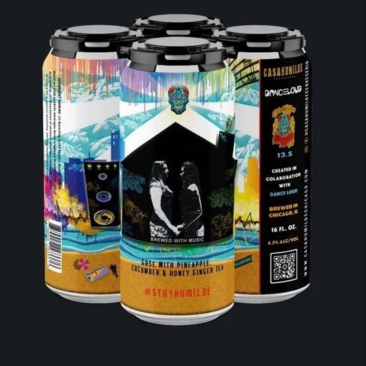 "Brewed with Music" GOSE (sour beer) with Pineapple, Cucumber & Honey Ginger Tea. In collaboration with Estrella Negra (Chicago restaurant) + Casa Humilde Cerveceria (Chicago brewery). Found at Estrella Negra 2346 w Fullerton Ave, Chicago, IL 60647